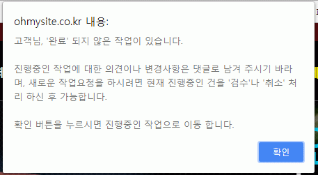 이미 요청한 유지관리 사항이 아직 진행중이거나 처리 완료 되었는데 고객님께서 검수완료 버튼을 누르지 않아