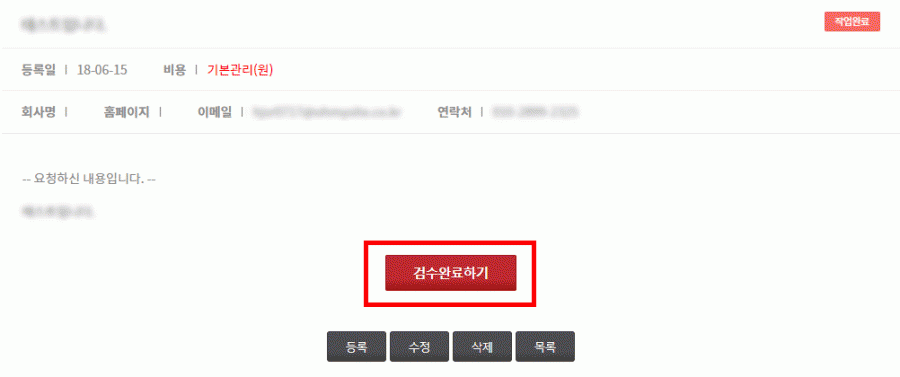 작업이 완료 된 경우 아래와 같이 검수완료하기 버튼이 뜹니다.